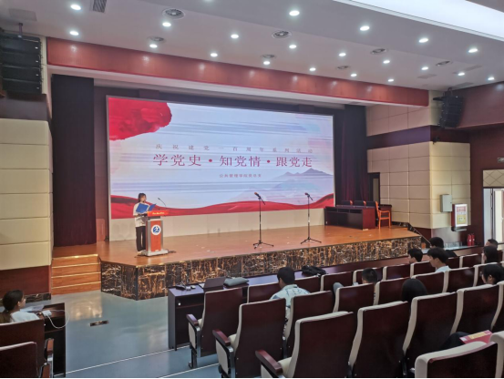 为庆祝中国共产党百年华诞,铭记光辉历程,持续巩固党史学习主题教育成果,向建党百年献礼,公共管理学院学生党支部于6月2日下午在图书馆报告厅举办了第二季度“学党史,知党情,跟党走”党史学习成果报告会,八十四名入党积极分子在报告会上分享了自己的学习成果,参加报告会的还有学院部分师生党员。