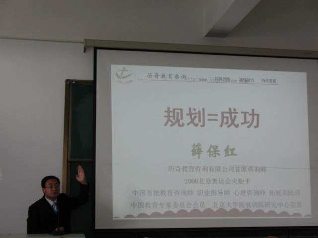 2月3日下午管理工程系邀请了北京大学拓展训练师、国家心理咨询师、2008北京火炬手、安徽工程科技学院的薛保红老师来我院,在西二501教室做了题为“规划=成功”的学术讲座。