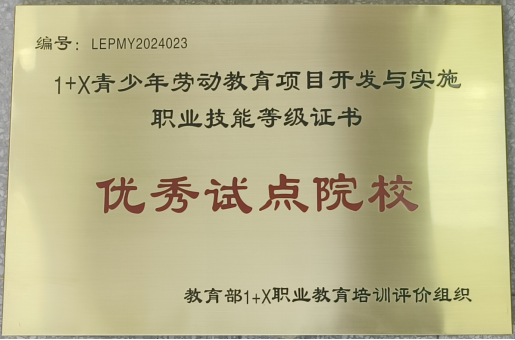 今年3月份,经教育部1+X职业教育培训评价组织认定,我校荣获1+X青少年劳动教育项目开发与实施职业技能等级证书“优秀试点”院校。