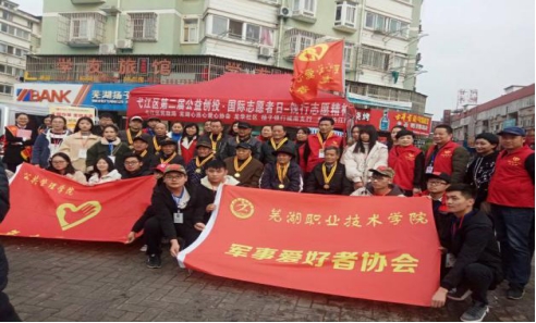 为了强化大学生思想道德素质和志愿服务精神,2019年12月5号国际志愿日,本协会与学院军事爱好者协会共19位成员,在鲁港新区大市场杨子银行门口帮助弋江区心连心爱心协会举办“12.5世界志愿者活动日”。邀请了多位退伍老兵,社区居民,”三无”老人.