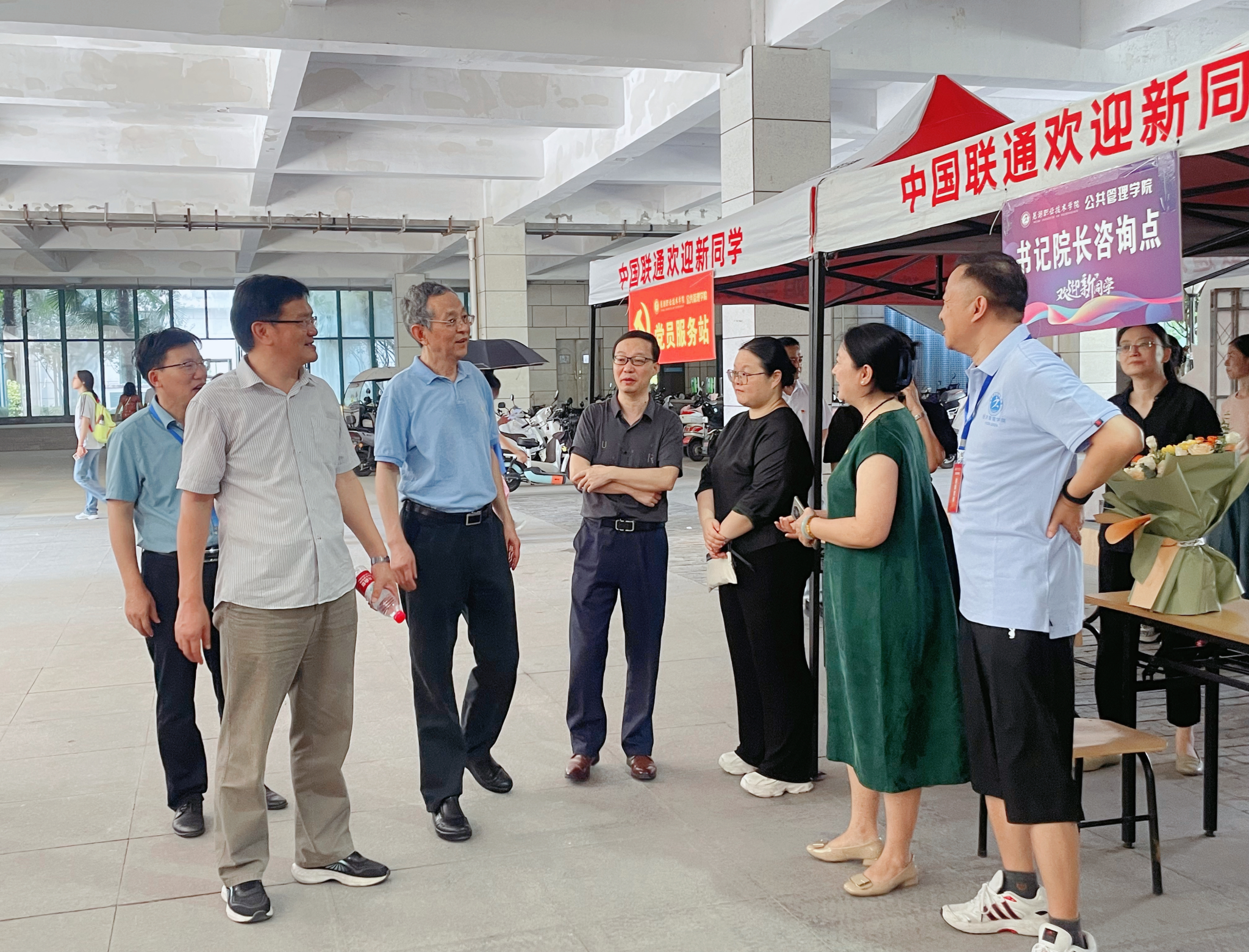 为了让新生充分感受到党组织的温暖和关怀,学生党支部召集学生党员和入党积极分子组成志愿者迎新服务队伍、设立党员服务站,以实际行动践行党的初心和使命,彰显责任担当,为新生提供贴心、周到的服务。志愿者们耐心解答新同学的问题,处处彰显着对新生的关爱,虽高温难耐,但志愿者们始终保持着高度的热情和责任感,充分发挥了党员的先锋模范作用。