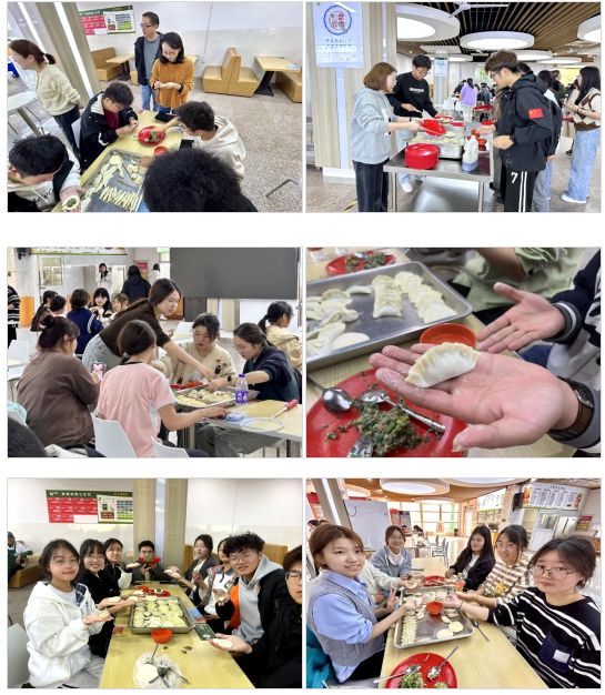 走进学校一食堂二楼,同学们分成小组积极参与包饺子活动。“拌馅子、包饺子、煮饺子”,活动现场热闹非凡,学生们边学边做,大家互相交流技巧,忙的不亦乐乎。“这是我第一次亲手包饺子,感觉非常有趣。”、“通过这次活动,我不仅学会了一项新技能,还了解到了饺子背后的文化意义。”、“没想到包饺子是个技术活,快看我包的饺子是不是最好看的?”同学们现场你一言我一语地分享着自己参与本次活动的快乐心得,大家欢乐的笑声和扑鼻的饺子香气充满了整个食堂。