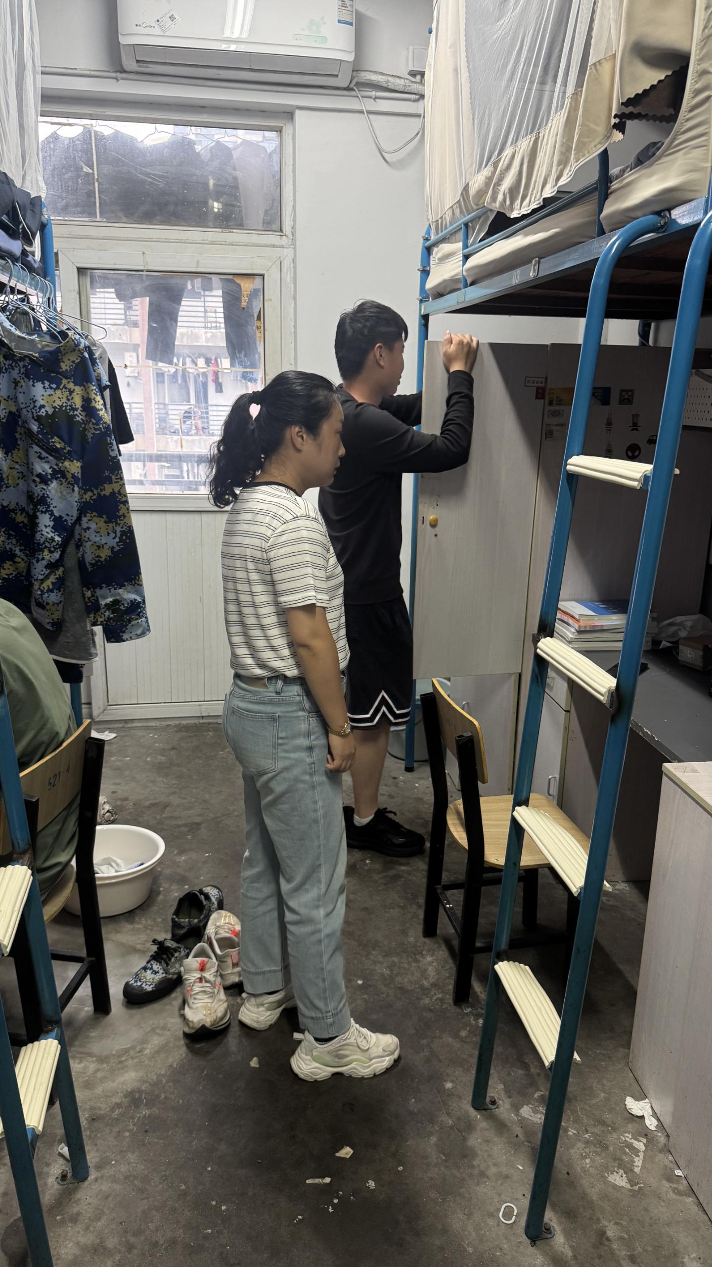 此次安全大检查聚焦师生学习生活等场所,覆盖学院教室、实训室及学生宿舍三大核心区域。在实训室检查中,工作人员重点核查实训设备和线路是否存在老化破损情况,同时对实训物料的分类摆放、存储规范进行逐一确认,确保符合安全操作标准;在教室区域,着重检查门窗锁具完好性、照明及电教设备断电情况。针对学生宿舍检查,辅导员、班主任从卫生环境与安全隐患两方面入手,一方面引导学生做好宿舍清洁整理,营造整洁居住环境,另一方面细致排查违规电器使用、线路私拉乱接等问题,现场向学生讲解安全风险。