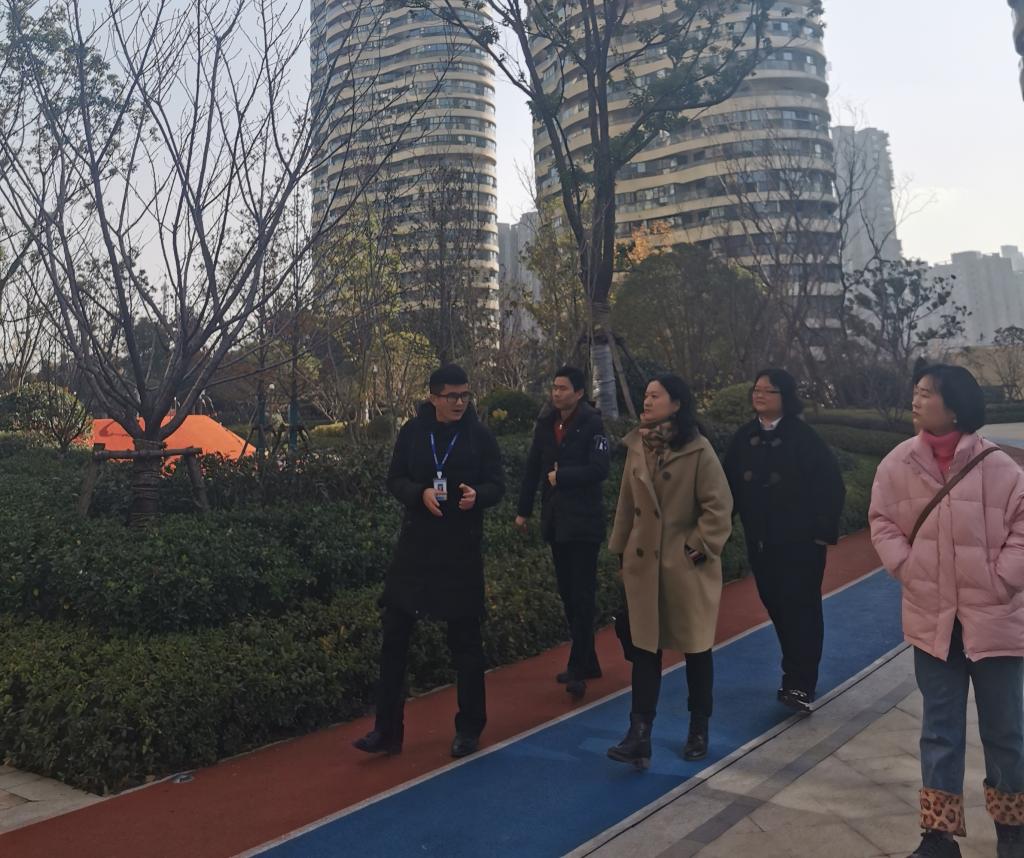 随后,伟星物业片区主管邓鹏飞带领大家一起参观了安徽伟星物业公司长江之歌小区,对小区的配套设施和服务体系进行了现场讲解。