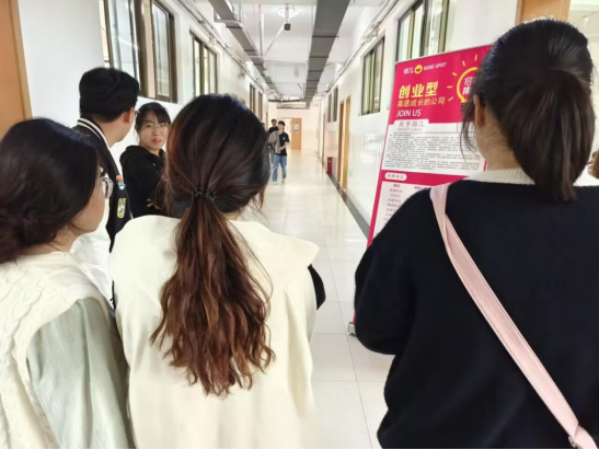图为我院学生引导应届毕业生参加邻几集团宣讲会