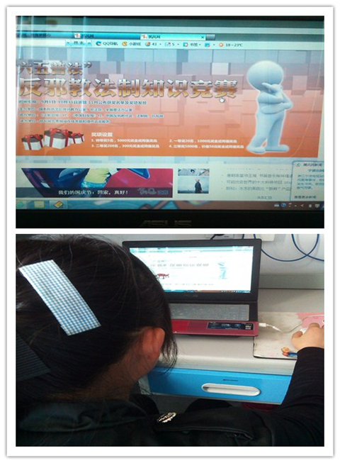 我院十分重视此次反邪教法制知识竞赛活动,全院学生踊跃参与反邪教法制知识竞赛活动。在学习和答题过程中,同学们遇到疑难问题后积极讨论,并分享彼此的心得体会;为了取得优异的成绩,有的到图书馆查阅资料,扩充视野范围;有的则向老师请教,虚心聆听他们的意见。同学们纷纷表示在这次活动中收获颇丰,在学习反邪教的法制知识中他们认清了邪教反社会、反科学、反人类的丑恶本质,深刻感受到在当今中国这个和谐社会里,科学才是全人类认识和改造世界的力量,是全人类思想智慧的结晶。