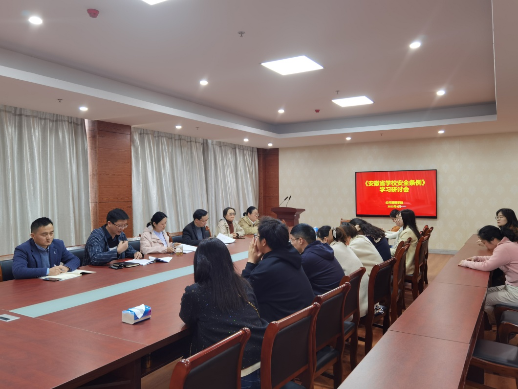为深入贯彻党的二十大精神,认真落实中央、省委省政府和省教育厅关于学校安全工作的各项决策部署,全力保障师生安全和学校稳定。4月7日下午,公共管理学院召开《安徽省学校安全条例》学习研讨会,会议由公共管理学院党总支书记徐枫主持,学院领导班子和全院教职工参加了会议。