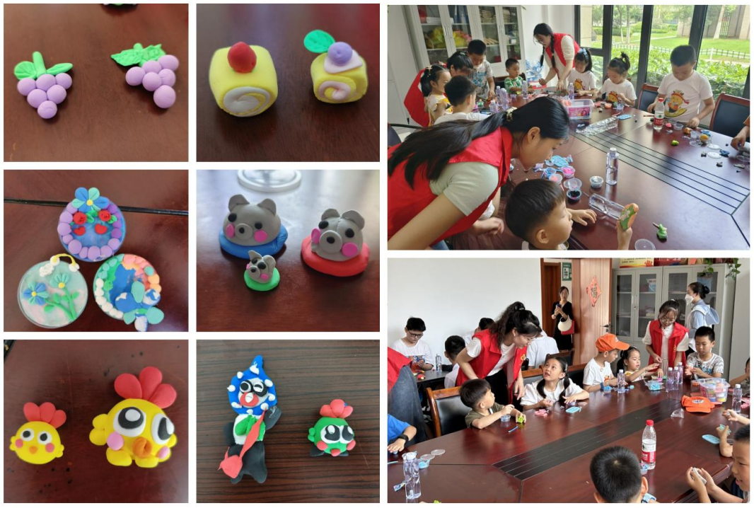 活动现场,小小的会议室里充满了欢声笑语。第一环节是创意手工教学,志愿者们耐心的向小朋友们讲述黏土的揉捏方法,在制作之前,首先要观察身边事物的特点,再根据每个事物的特点去制作黏土。根据志愿者们教授的方法,小朋友们充分发挥想象力,捏出了一个个生动逼真的小动物、小花朵等作品。