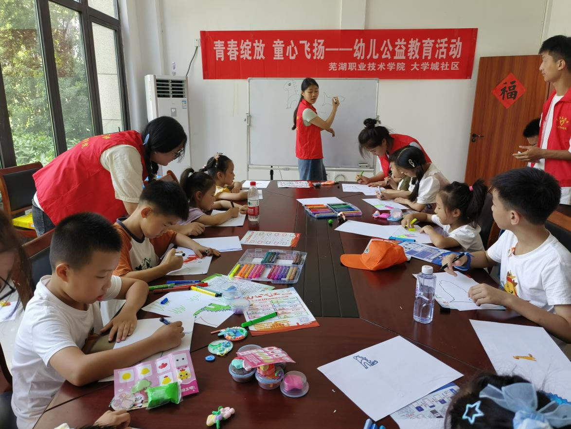 为学习贯彻落实党的二十大精神和习近平总书记关于青年工作的重要思想,引导和帮助广大青年学生上好与社会实践相结合的“大思政课”,公共管理学院学生党支部、团委利用暑假组织师生积极开展暑期“三下乡”实践活动。8月6日,学院团委书记张婉春组织带领“点亮童心”服务队志愿者们前往大学城社区,与社区联合开展“青春绽放 童心飞扬”幼儿爱心公益教育活动。