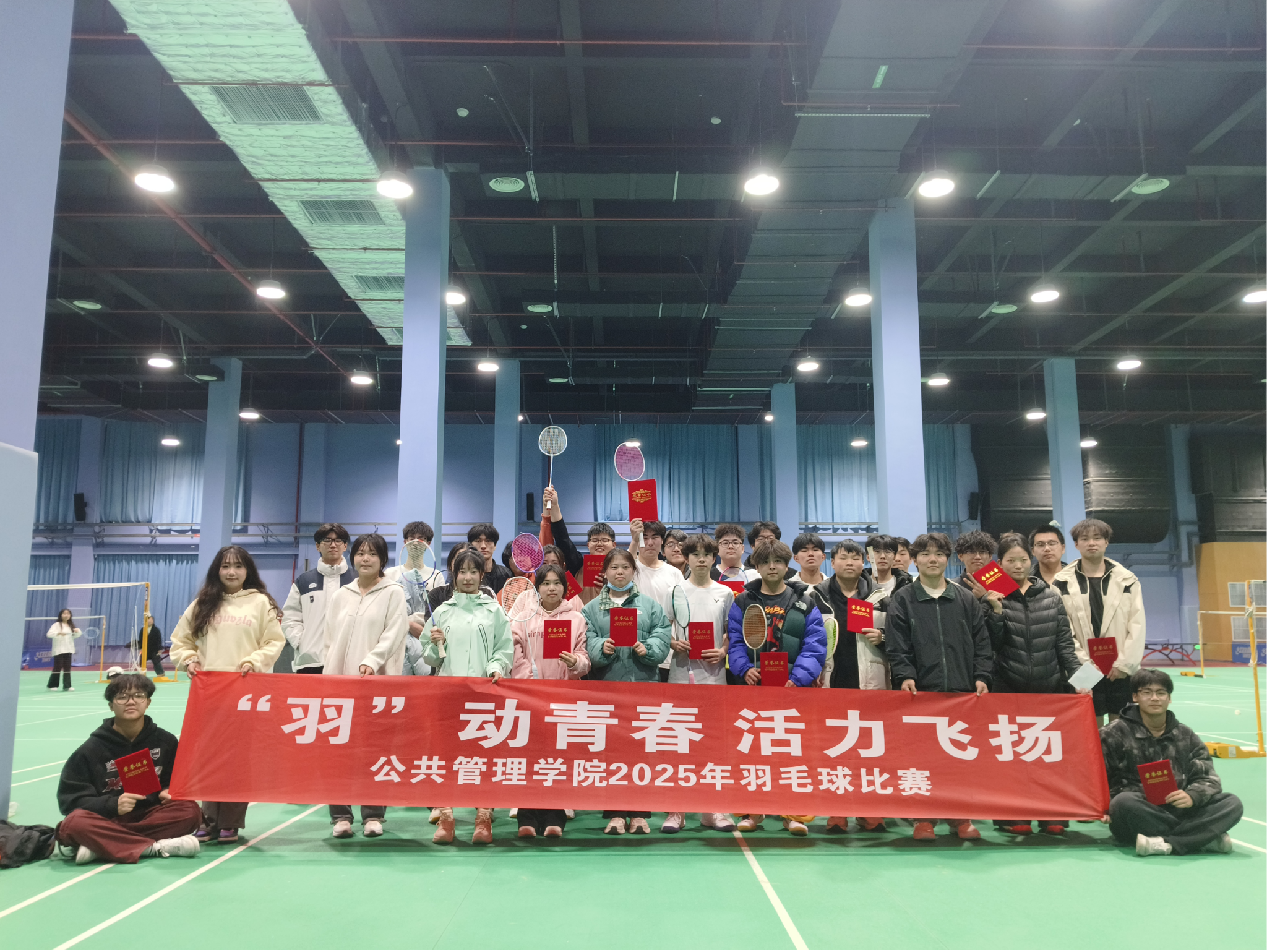 经过一个月的激烈角逐,公共管理学院2025年羽毛球比赛于4月2日圆满落幕。最终,朱洪涛同学获得男子单打冠军,田程同学获得女子单打冠军,刘赵园、谢俊实同学获得男子双打冠军,范紫慧、田程同学女子获得双打冠军。此次羽毛球比赛的成功举办,为同学们提供了展示自我风采的舞台,增进了同学们之间的交流与合作,充分展现公管学子团结奋进的精神风貌。未来,公共管理学院团委学生会将继续举办各类体育活动,鼓励同学们踊跃参与,共绘活力校园新图景。(文/孙旭杰 图/张婉春 审/徐枫)