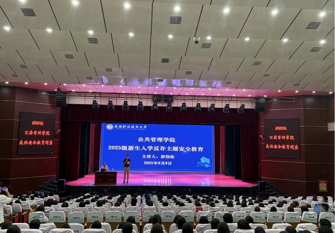 9月9日,公共管理学院在南校区大礼堂开展2025级新生安全教育专题讲座。本次讲座邀请到保卫处副处长彭伟松作为主讲人,学院党总支副书记王永琦、学工科长毕厚煌、全体辅导员及2025级新生出席参加。