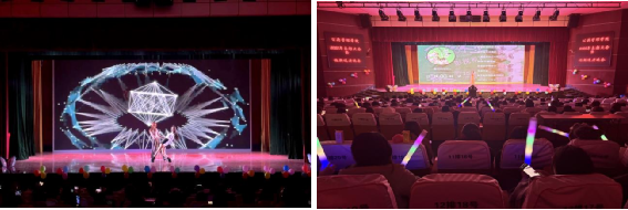 节目开始前,晚会设置互动环节“看图猜成语”巧妙融入芜湖本地文化元素,同学们踊跃参与,现场欢声笑语,气氛活跃。随后的文艺演出精彩纷呈,爵士舞活力四射,舞台剧《玉碎金陵月》深情演绎家国情怀,朗诵节目铿锵有力,独唱《最初的记忆》与歌舞《光亮》将晚会推向高潮,展现出同学们的多元才艺与青春风采。