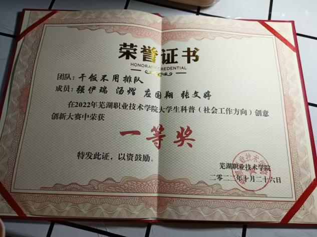 社工大赛。从班级内部选拔,再到院赛,强伊瑞、张文婷、应国翔、汤熠四位同学层层闯关,最终获得院赛一等奖的好成绩。
